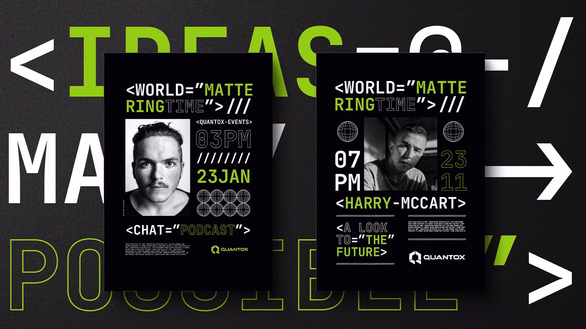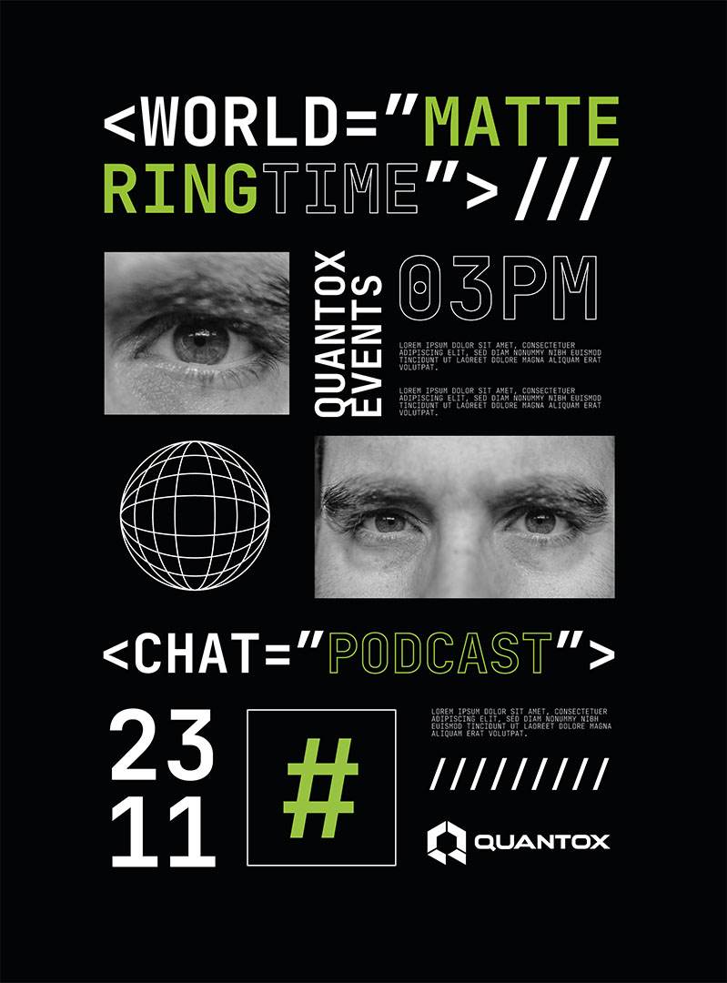 The project started with a research phase to map and identify all the aesthetic elements that might resonate with the Quantox brand personality.